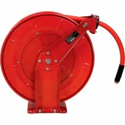 Sturdy single pedestal reel with space saving design facilitates workplace organization Guide arm adjusts to wall, floor, vehicle & overhead positions Solid one piece, heavy gauge 1/4″ steel base & support post for maximum stability 1″ solid steel axle & lubricated precision bearings for smooth rotation