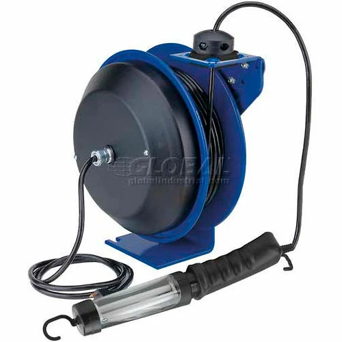 Power Cord Spring Rewind Reel: Fluor. Angle Light, 35′ Cord, 16 AWG