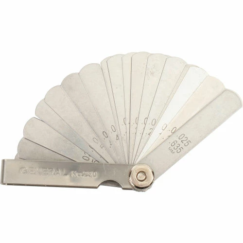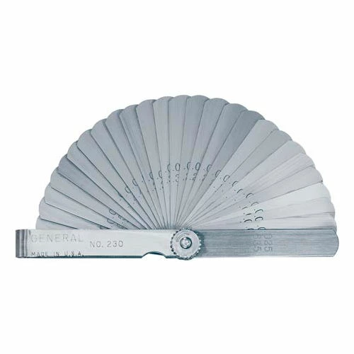 General’s Feeler Gages are used for adjusting and gauging spark plugs, distributor points and valve clearances, or any other instance of measuring the space between two parts. Our best-selling Economy Series Gages provide spot-on accuracy at a competitive price. This 26 Leaf Economy Feeler gage features straight leaves etched with both Metric and English units, ranging from .0015″ to .025″ and .037mm to .635mm. The set is housed in a protective holder to preserve the trueness of the leaf edges.