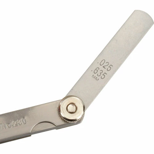 - Includes the following sizes: .0015″, .002″, .0025″, .003″, .004″, .005″, .006″, .007″, .008″, .009″, .010″, .011″, .012″, .013″, .014″, .015″, .016″, .017″, .018″, .019″, .020″, .021″, .022″, .023″, .024″ and .025″., Metric range is .037mm to .635mm