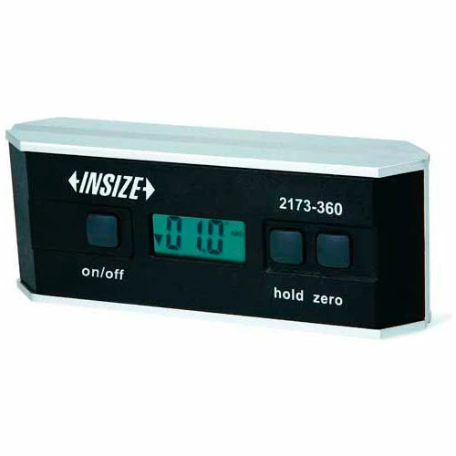 InSize Electronic Digital Protractor & Level 0-360°, 2173-360 Used as level and protractor Aluminum frame Magnetic bottom with V-groove for shafts Zero setting can be used at any angle Buttons: ON/OFF, ZERO, DATA HOLD CR2032 battery Automatic power off Supplied in leather pouch