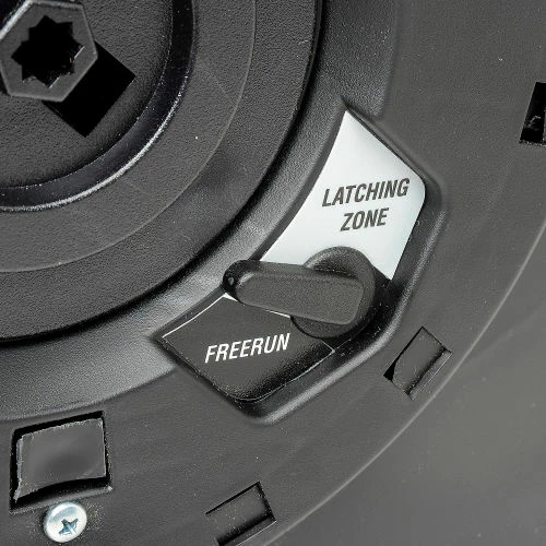 Levelwind Technology This unique winding system automatically layers the hose back and forth across the reel. This ensures that the hose is coiled smoothly and easily…every time. 2. Durable Construction Made from durable UV-stabilized polypropylene. 3. Free-Standing Base Portable! Use free-standing or mounted on a wall or ceiling. Flat base allows reel to rest on ground. Built-in handle for carrying ease! 4. Latching Mode Switch Choose Latch Mode to latch hose every 3 feet for extended use, or switch to Free Run for immediate automatic rewinding. 5. Seven Position Locking Bracket Reels swivel freely on the mounting bracket up to 135° or locked into place using the 7 position locking brace. Up to seven angles can be utilized.
