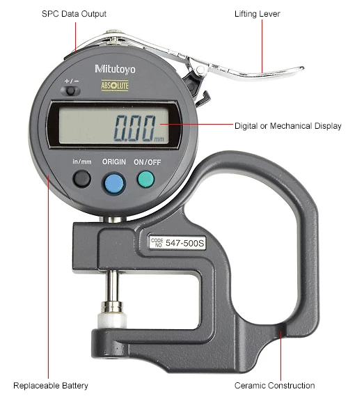 Mitutoyo 547-500S 0-.47" / 0-12MM Digimatic Digital Thickness Gage (.005" Resolution)