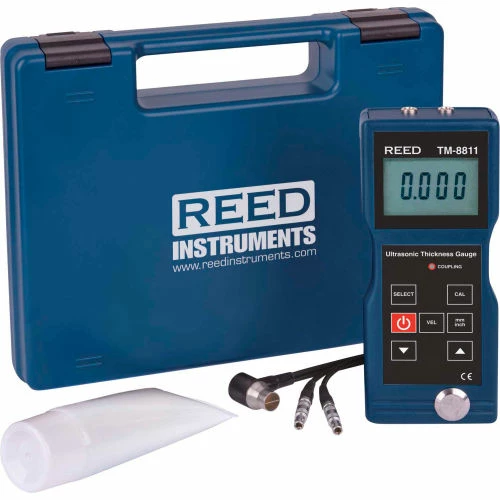 - Measures the thickness of steel, cast iron, aluminum, red copper, brass, zinc, quartz glass, polyethylene, PVC, grey cast iron and nodular cast iron