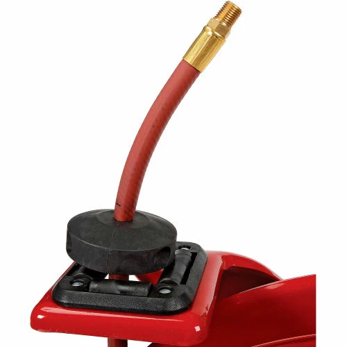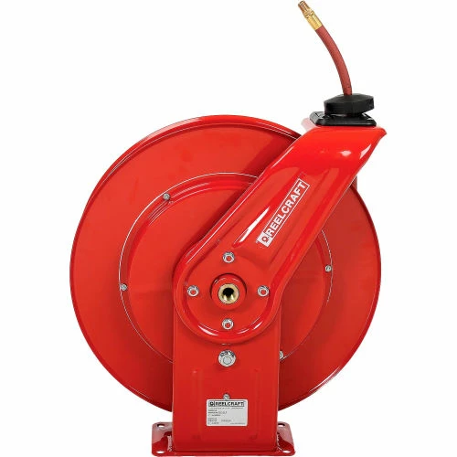 This Reelcraft Series 7000 hose reel is very robust and ideal for the most demanding applications. The reel’s base and guide arm are formed from high-grade steel and engineered with structural forms and gussets to yield the greatest amount of strength. The standard low pressure hose is for air or water service only. The basic reel without hose can be used for air, water or oil. Guide arm adjusts to 3 positions.